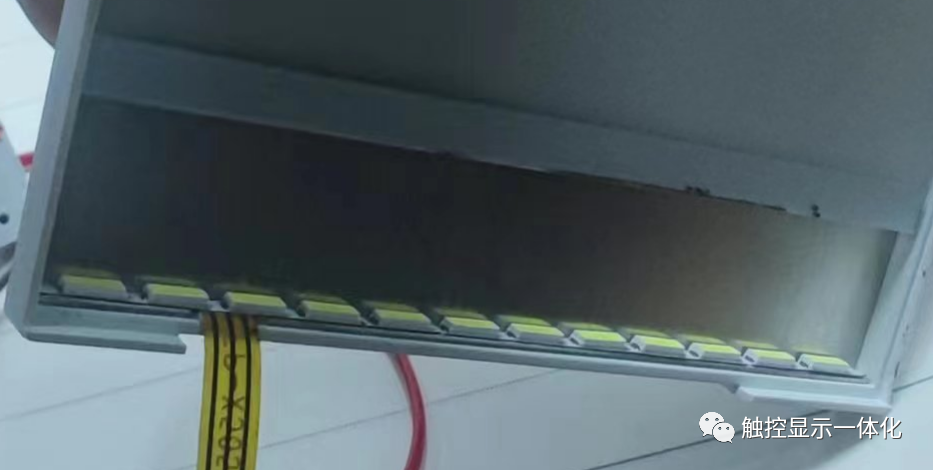 8寸项目总成550nit高亮胶铁一体背光,在制造过程中盖章、背光朝下周转都非常容易导致背光白印且用手指挤压背光,侧视可以看到明显的背光白印。拆开LCM背光发现PC料导光板网点侧坍塌。